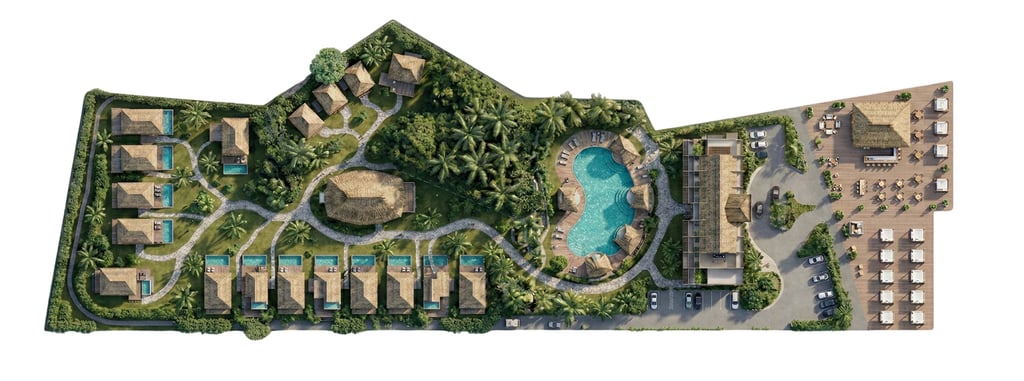 Every detail in this plan was carefully considered to optimize the guest experience. The thoughtful clustering of private villas, the strategic central placement of the winding lagoon pool, and the seamless integration of a multi-story hotel and a stunning overwater restaurant and bar are all designed to balance community and tranquility. By focusing on smart circulation and maximizing waterfront access, we are not just planning a site; we are crafting a complete retreat. We take great pride in the meticulous masterplanning that makes this vision possible.